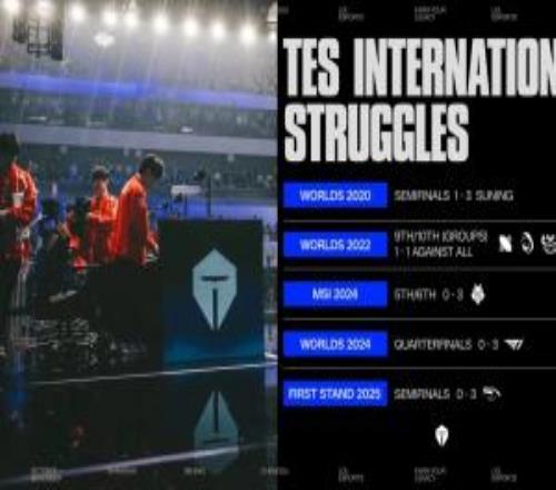体育资讯10月15日称 LOL英文流列出TES国际赛惨淡成绩,并配文“他们能否打破诅咒?”