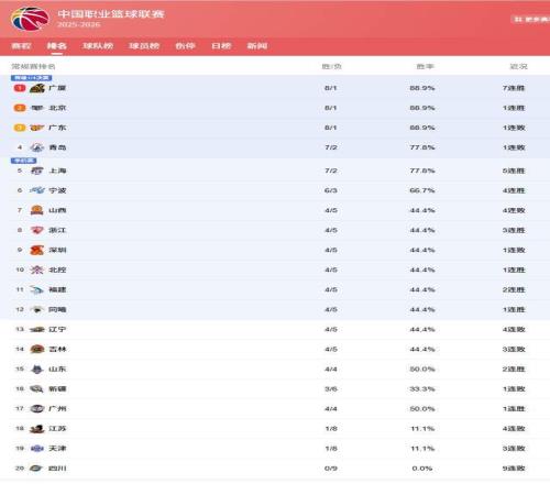 青岛队本轮虽负于浙江,但仍以微弱优势巩固第四位置,黑马属性十足。上海队则完成五连胜,磨合渐入佳境,展现出了极强的竞争力。宁波队成为本轮最大惊喜,凭借6胜战绩跃居第七,这匹黑马看看能走多远,这支球队不仅外援实力强劲,本土球员培养也卓有成效,全队上限明显提