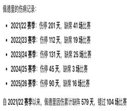 佩德里伤退,或缺阵4-5周