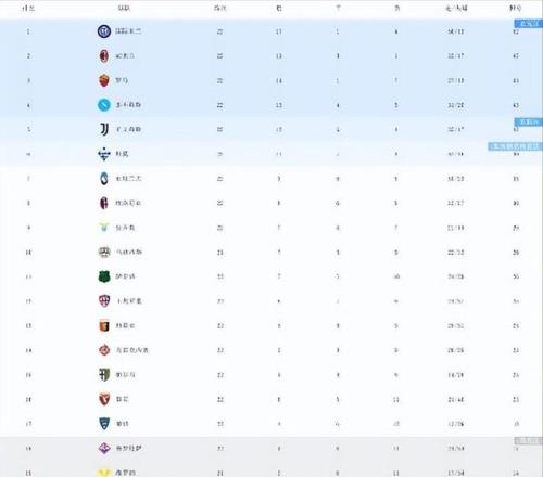 1130意甲积分榜争冠难了AC米兰21轮不败落后国米5分尤文第5